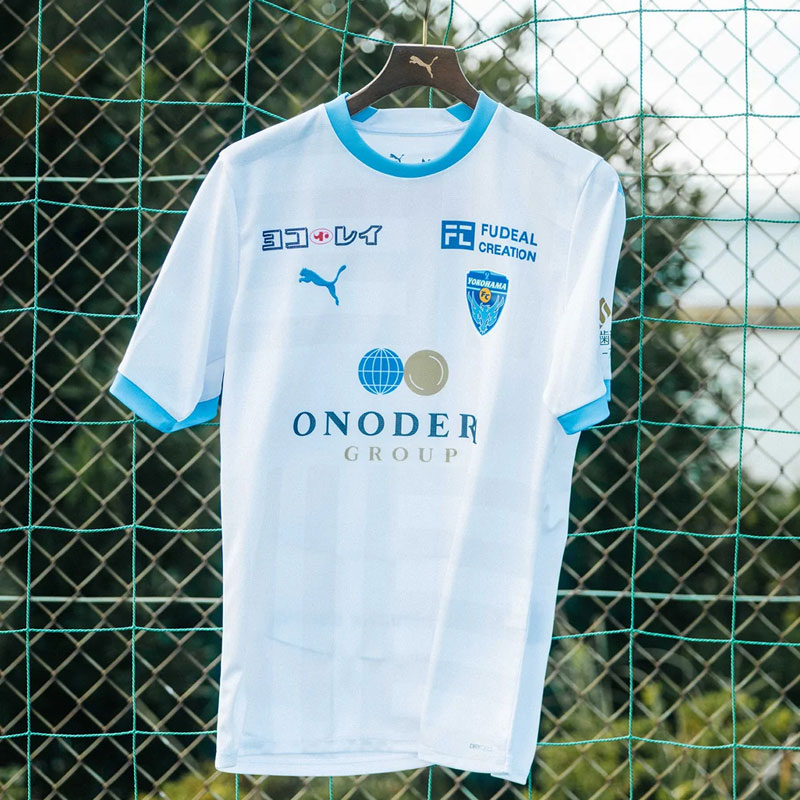 横浜FCとPumaが初めてタッグを組んだユニフォーム。ホームと共通のデザインで、ボーダーとストライプを掛け合わせた独創的なパターンで「クラブとサポーターの融合」を表現している。