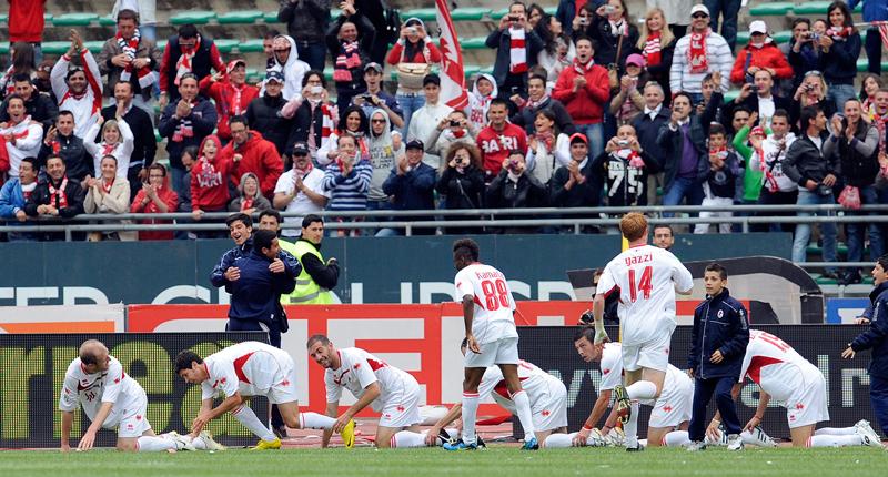 最近は途絶えていたというこのパフォーマンスが、セリエCを優勝した昨シーズンに復活したという。