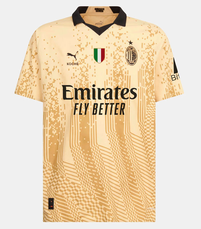 22-23新フォースユニフォームはGKキットも登場。シャツを覆うピクセルグラフィックはFP用と同じで、こちらはゴールドを基調としたデザイン。