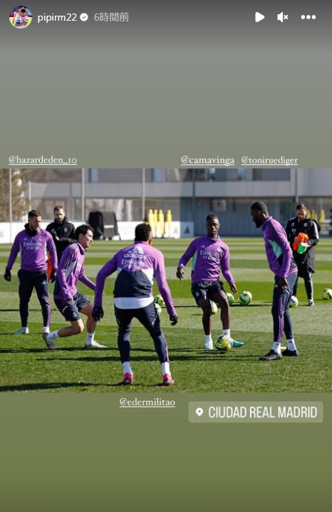 先日のマドリッドダービーで英雄ゴールを決めたアルバロ・ロドリゲスらカスティージャの同僚とともにトップチームの練習に参加した。レアル公式の動画でその様子が確認できる(動画50秒から)。