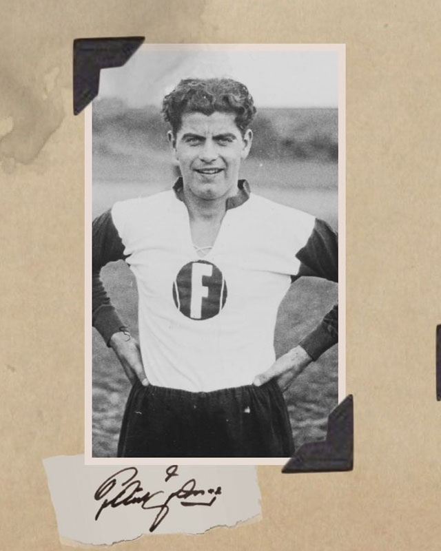 このユニフォーム姿の人物がレジェンドのハネス氏。今回の特別ユニフォームは彼が活躍した1930年代、40年代のキットデザインをイメージしたものだ。