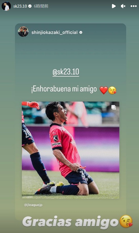 同じシンジの名前を持つ岡崎慎司が「おめでとう、我が友よ」とスペイン語でメッセージを送ると、香川も「ありがとう、友よ」とスペイン語で返信していた(2人ともスペインでのプレー経験がある)。