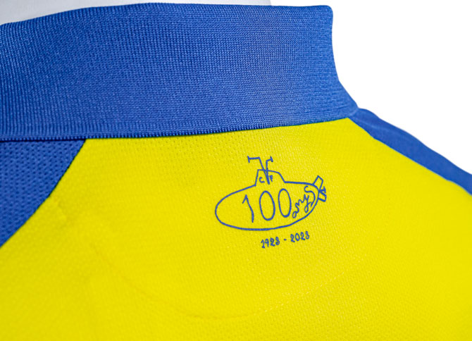 首元の内側には歴代エンブレムをプリントし、クラブ100年の歴史を可視化。背面には今回のために特別にデザインされた潜水艦の記念ロゴマークを配置する。クラブの愛称はイエローサブマリン(黄色い潜水艦)だ。