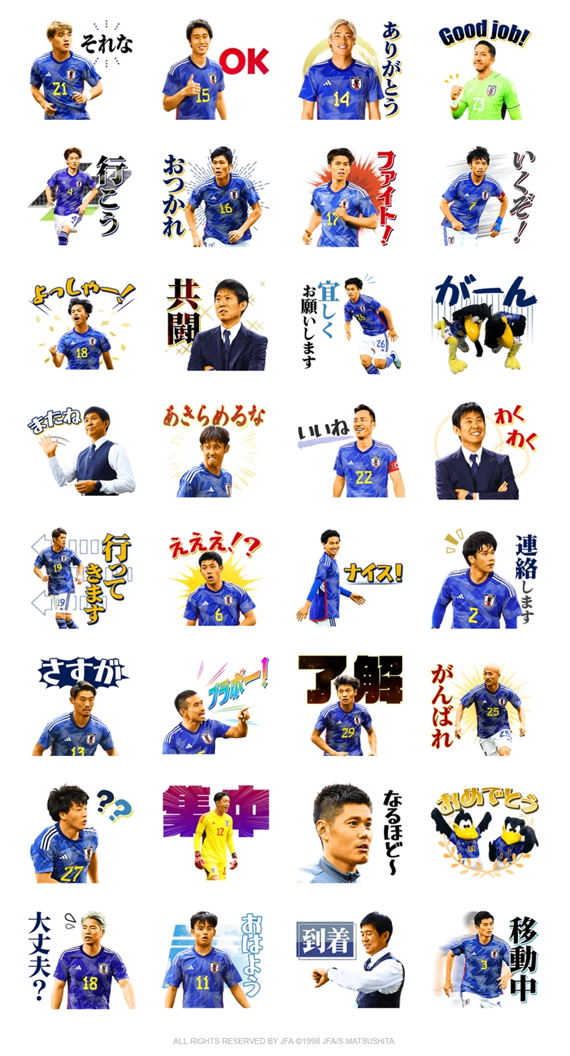 日本サッカー協会(JFA)は14日、LINEで使える「サッカー日本代表公式スタンプ第2弾」の販売を開始したことを発表した。