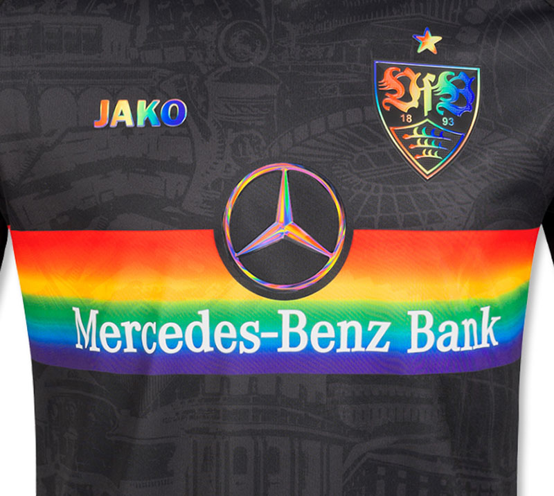 シュトゥットガルトがダイバーシティキットをリリースするのは今回が2度目。20-21シーズンにクラブ史上初めて制作し、ブンデスリーガのマインツ戦1試合限定で着用した。