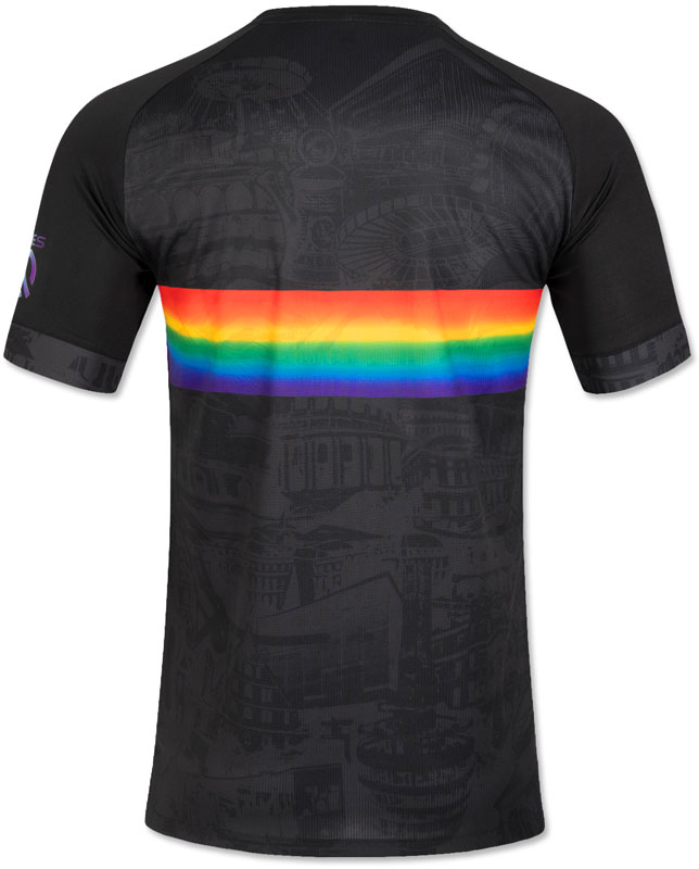 エンブレム、メーカーロゴ、そしてトレードマークの胸ボーダーを、ダイバーシティの象徴色であるレインボーカラーで彩った特別ユニフォーム。キットデザイン自体は今季のサードキットをベースとしている。
