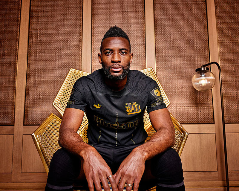 スポンサーロゴやネームナンバーも徹底的にブラック&ゴールド。右胸のスウッシュ(Nikeロゴ)の上にゴールドのクラシックなロゴを重ねるスタイルは、AIKが2月に発表した132周年ユニフォームと同じパターンだ。