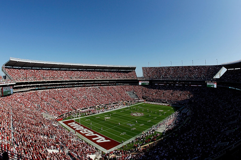 8位からはいよいよ10万人の大台に突入。アラバマ大学はカレッジフットボールの超名門校で、歴代最多の17回全米チャンピオンに輝いている。チームの愛称は「クリムゾンタイド」。