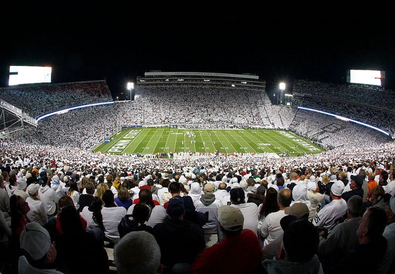 上位はカレッジフットボールの独壇場。各スタジアムとも試合当日はチームカラー一色に染まるが、その中でも“異様”と言えるのが「ペン・ステイト」ことペンシルベニア州立大のビーバー・スタジアム(2位)。