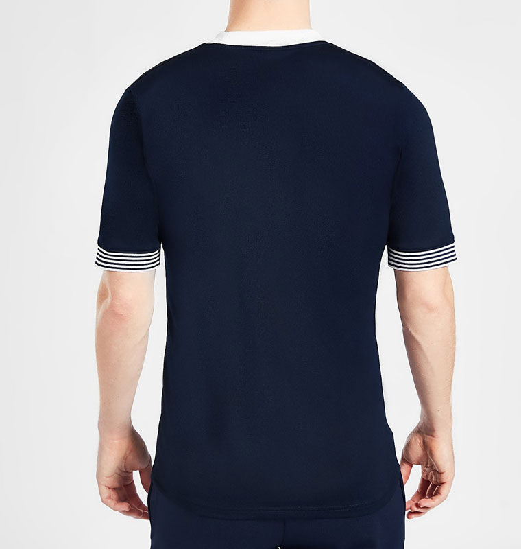ゴールドに輝くエンブレムと同じくらいに印象的なのが袖口の意外なストライプ柄だが、実はこの柄こそ、まさにスコットランド代表150年前の“原点”を表現しているものだ。