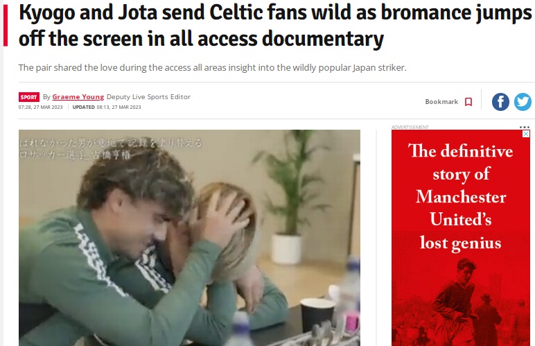 「亨梧とジョタがセルティックファンを熱狂させる。密着ドキュメンタリー番組でブロマンスが炸裂。
