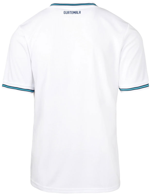 背面は非常にシンプルで首元に国名“GUATEMALA”をレタリングするのみ。襟と袖口には国旗カラーのストライプを配する。
