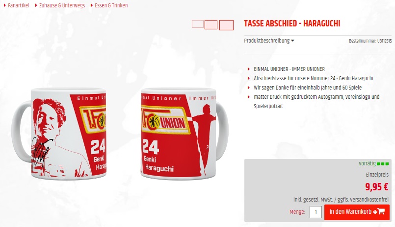 「 (ウニオンでは、9.95ユーロ(1435円)であなたのさよならマグカップを買うことができる。それはどう思う?)