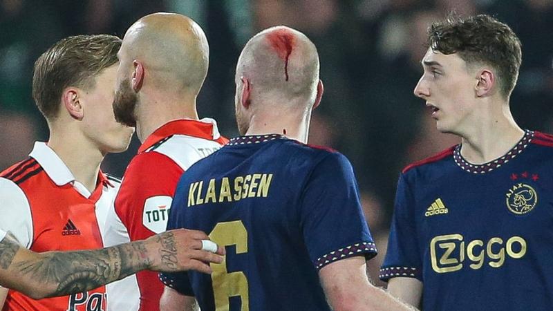 Schandalig: de wedstrijd tussen Feyenoord en Ajax is gestaakt nadat Davy Klaassen is geraakt door een aansteker uit het publiek. pic.twitter.com/4Lp4hSlJQ3