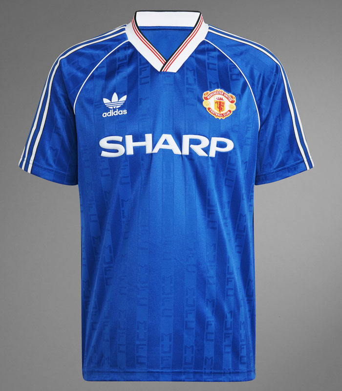 この1988-90モデルは、ホームにレッド、アウェイにホワイト、サードにブルーというラインナップだった。どれも基本デザインは同じで、ラップオーバーのVネックを採用し、シャドーのストライプに“MUFC”の文字を落とし込むスタイル。
