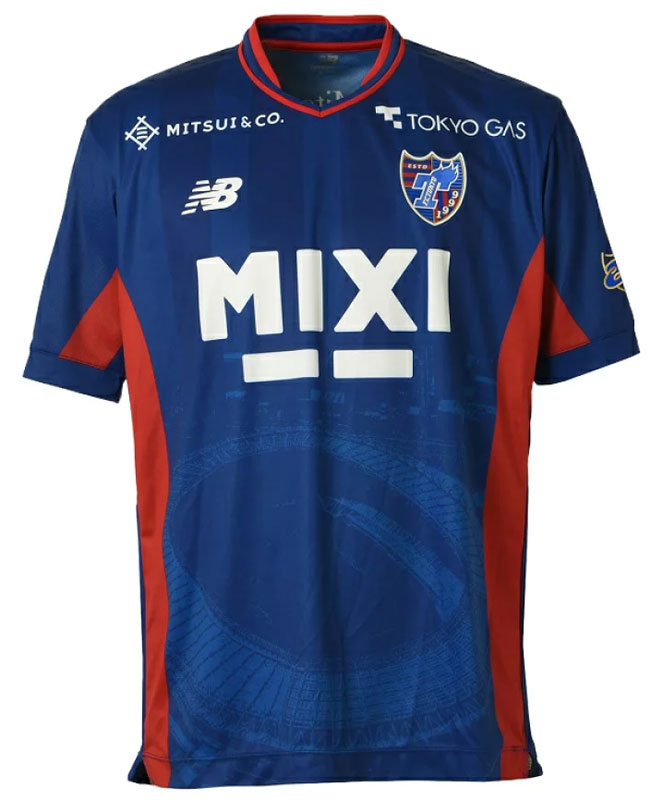 クラブとともに歩んできた本拠地「味の素スタジアム」の空撮グラフィックがスペシャルな雰囲気を演出。ストライプを走らせる襟のデザインは、2023モデルをベースに99年のアウェイユニフォームを踏襲したもの。