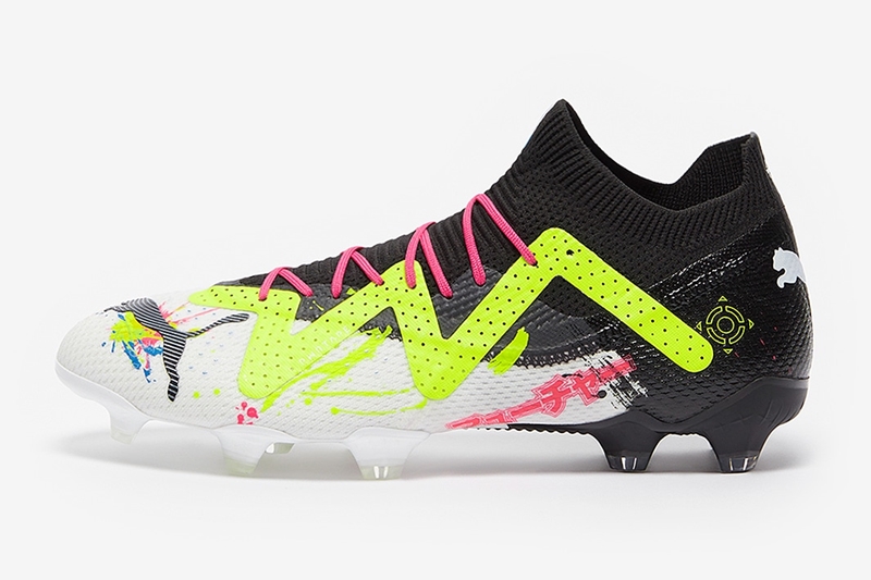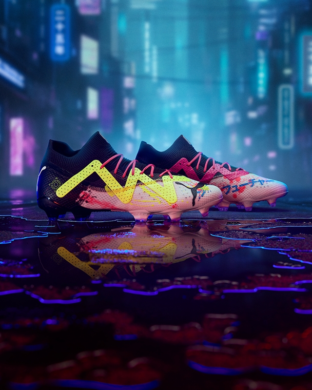 今回、ネイマールなどが履く最新モデルの『フューチャー アルティメット』に、伝説的スパイクを受け継いだデザインを施し、12年の時を経て「パワーキャットTOKYO」が現代に蘇った。