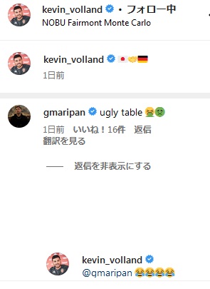 ただ、モナコのチリ人DFギジェルモ・マリパンは「醜いテーブル」と嘔吐する絵文字で突っ込んでおり、フォラントは泣き笑いの絵文字で返信していた。