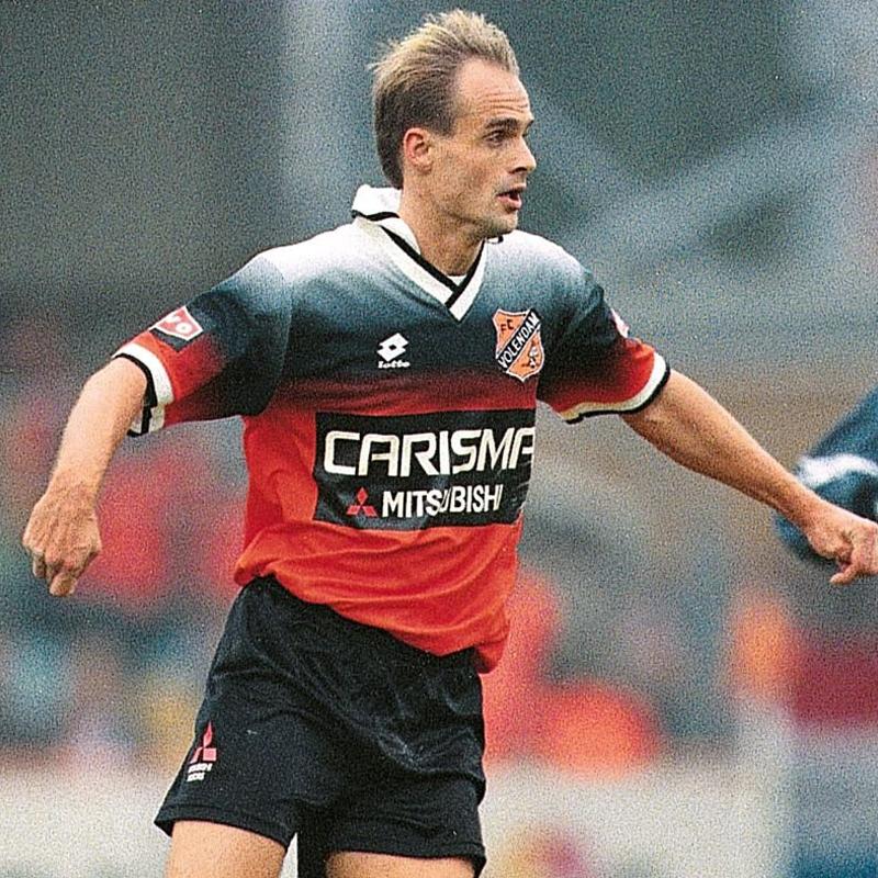 オランダのフォレンダムはこの97-98シーズンのみ三菱自動車と契約。グラデーションが印象的なユニフォームにロゴを掲出した。“CARISMA”(カリスマ)とは、かつて三菱が欧州市場向けに販売していたファミリーカーの車種名だ。