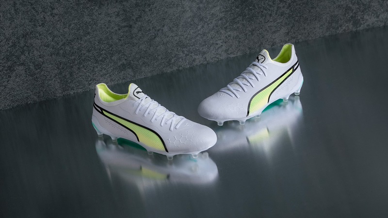 『キング アルティメット』の新色は、プーマホワイト/プーマブラック/ファストイエロー/エレクトロペパーミント。