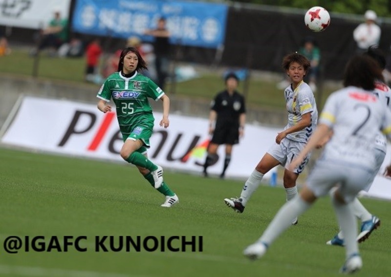 伊賀FCくノ一時代の吉武愛美さん(緑25番、2017年5月) 写真提供:伊賀FCくノ一三重
