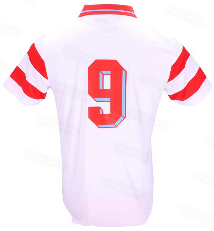 こちらは胸・背番号9をプリントしたレトロジャージ。9番は1991-96年までセビージャでプレーした元クロアチア代表FWダヴォール・シュケル氏が付けていた番号だ。