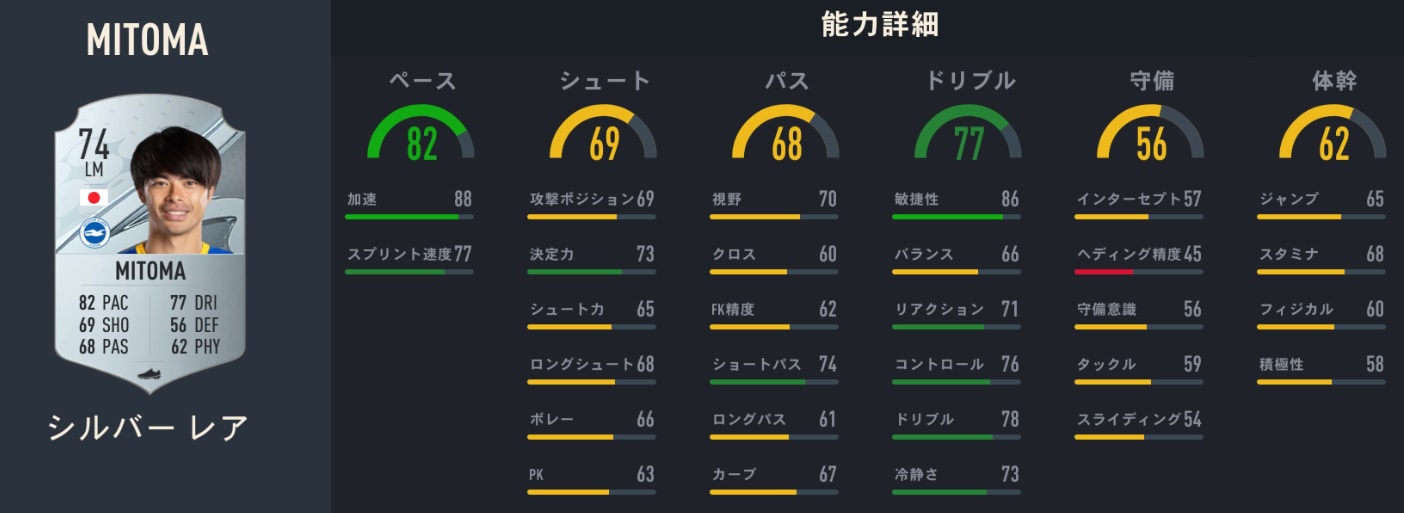 実際、アルティメットモードでは反映されていないが、シーズン中のアップデートで三笘は79、マルチネッリも82まで能力値が上昇している。