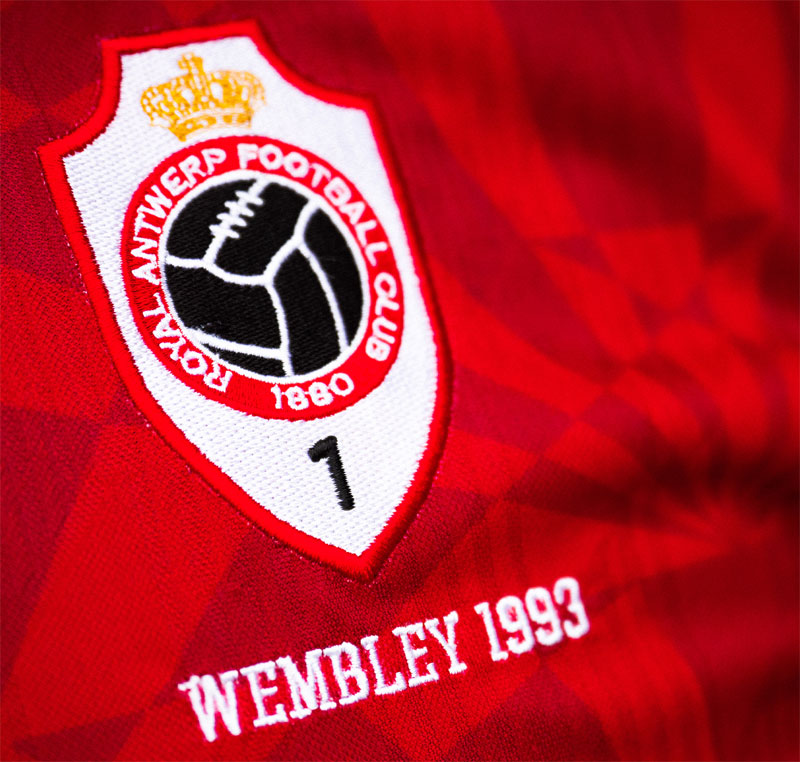 WEMBLEYとはもちろんイングランドのウェンブリー・スタジアムのこと。1992-93シーズンのCWCファイナルの開催地であり、アントワープは透かしデザインが印象的な赤いキットを着て決勝に臨んだ。