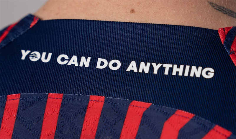 背面襟部分にはクラブのモットー“YOU CAN DO ANYTHING”(何でもできる)をレタリング。上昇志向のアローデザインにこのモットー。非常にポジティブなユニデザインだ。