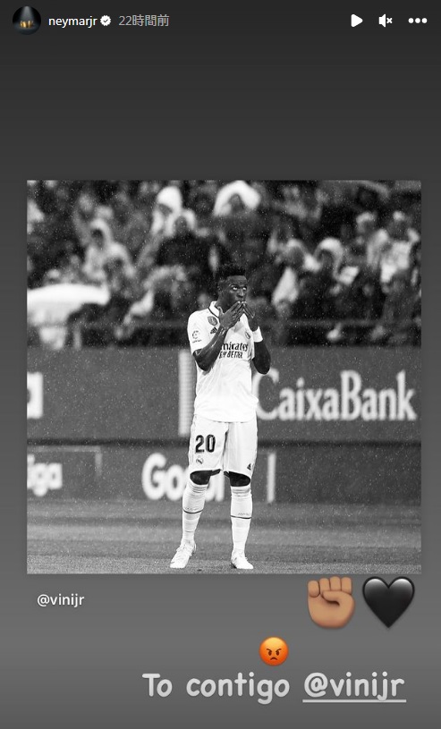 ネイマールら多くの選手たちがヴィニシウスを擁護する投稿をSNS上でしている。
