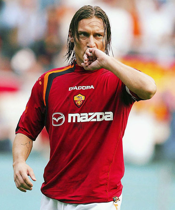 「MAZDA」胸ロゴで最も有名な海外チームの一つはローマ。2002-03から2004-05までの3シーズンでこのロゴを胸に付けている。UEFAチャンピオンズリーグという大舞台でも共に戦った。
