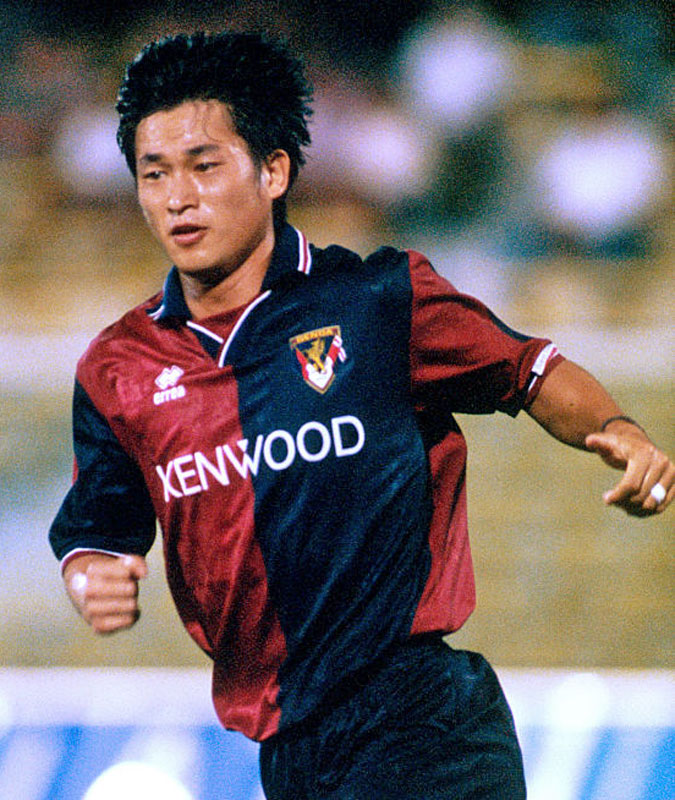 今に続く“日本人セリエAへの道”は三浦知良の挑戦から始まった。負傷したシーズン開幕戦やゴールを決めたジェノヴァ・ダービーなどで、このホームキットを着用している。