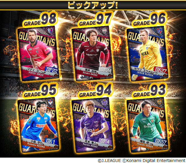 また『Jクラ』が選出した、各クラブの守備の要として活躍する総勢40名の選手が「ガーディアン」カードとして期間限定で登場する。