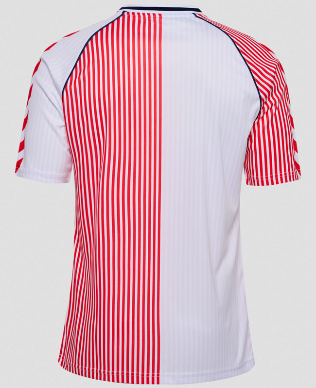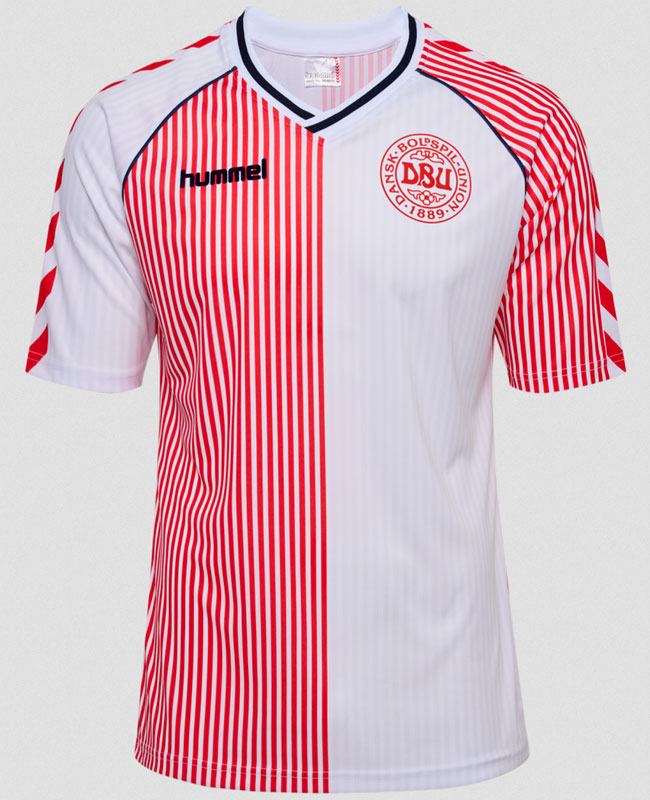 見るからにレトロでクラシックなデザインの特別ユニフォーム。これはデンマークが初めてワールドカップ本大会に出場した1986年メキシコ大会でのユニを復刻したものだ。