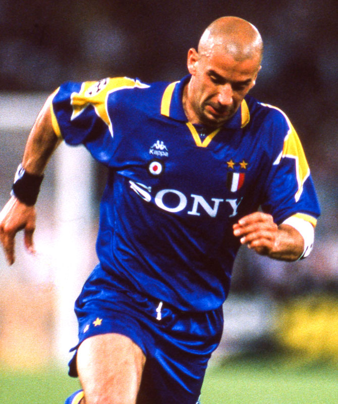 ユーヴェのユニといえば白黒のビアンコネロだが、90年代CLとなると優勝ユニである青と黄のアウェイが印象深い。