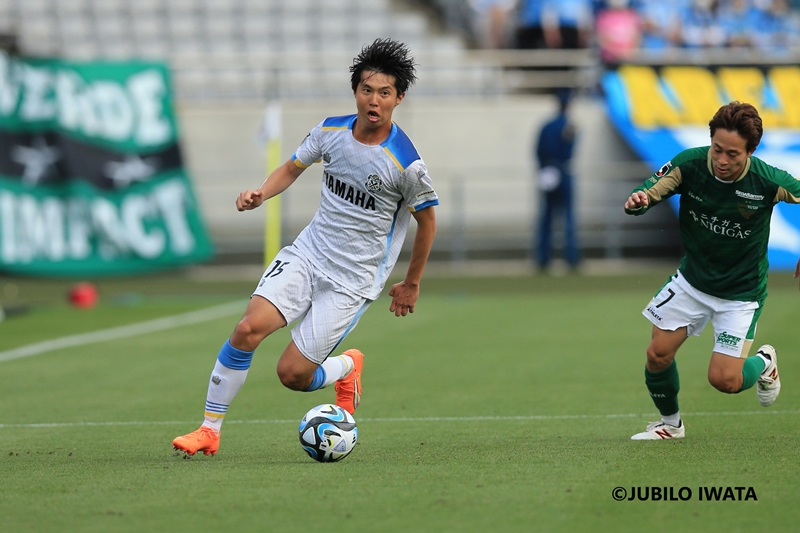 DFながらドリブルでの持ち運びや鋭い縦パスも武器とする。写真は第13節の東京V戦(写真提供:ジュビロ磐田)
