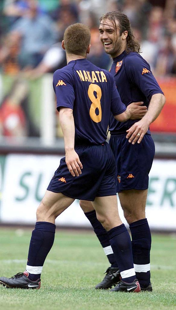 2000年にローマへ加入し、中田英寿とチームメイトになったアルゼンチン代表のストライカー。当時はすでにベテラン選手であったが、移籍初年度から20ゴールを決めて優勝に大きく貢献した。