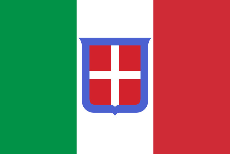 代表チームが初の国際試合を行った1910年当時、イタリアはまだ現在の共和制「イタリア共和国」ではなく、貴族サヴォイア家を王家とする「イタリア王国」の時代。国旗は中心のホワイト部分にサヴォイア家の紋章を配したデザインが使われていた。