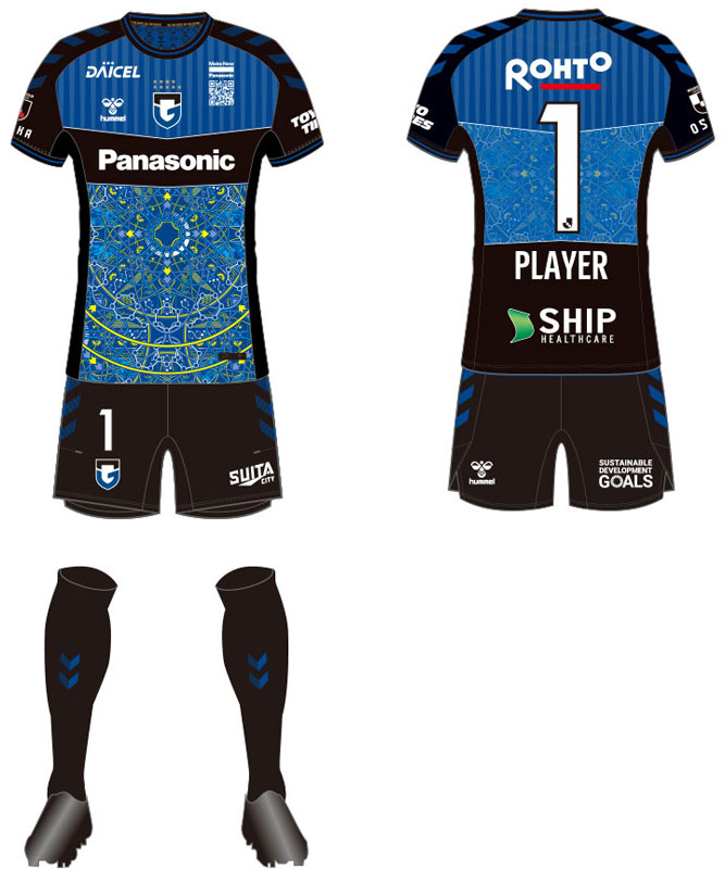 今年のEXPOユニフォームはフィールドプレーヤーがブラックのため、GKユニフォームにガンバブルーを採用となった。デザイン自体はFP用と共通で使用。