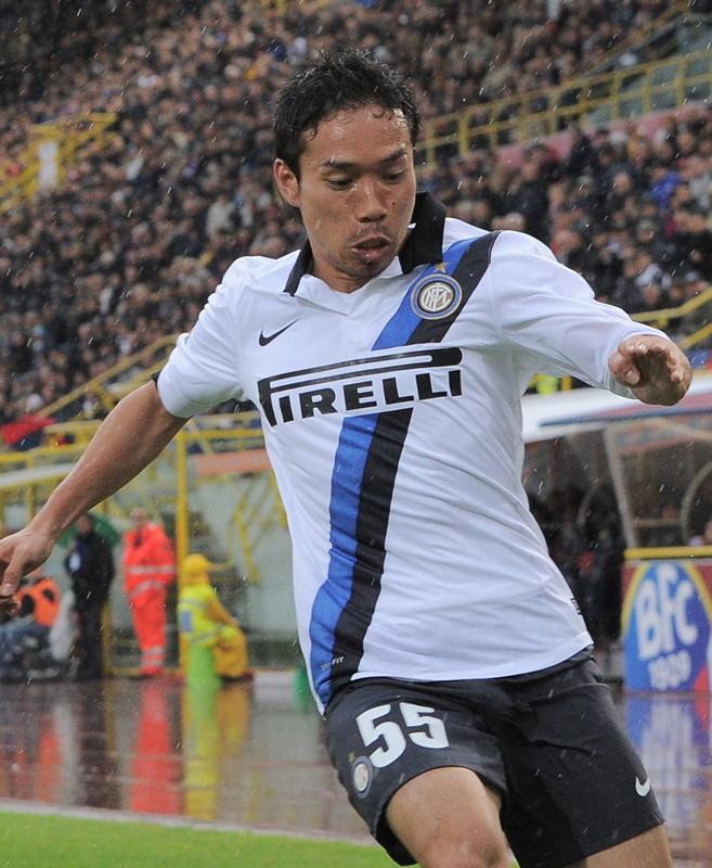 イタリアの名門インテルは10年に一度くらいの間隔でタスキを使う。この12-13モデルは長友佑都もタスキ・ユニに袖を通した。
