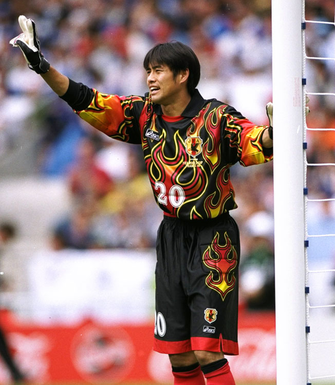 炎ユニと言えば忘れてはならないのがGKユニフォーム。全身に燃えさかる炎をデザインが強烈なインパクトを放つこのキットは海外でも話題となり、現在でも古着ユニが高額で取引されている。