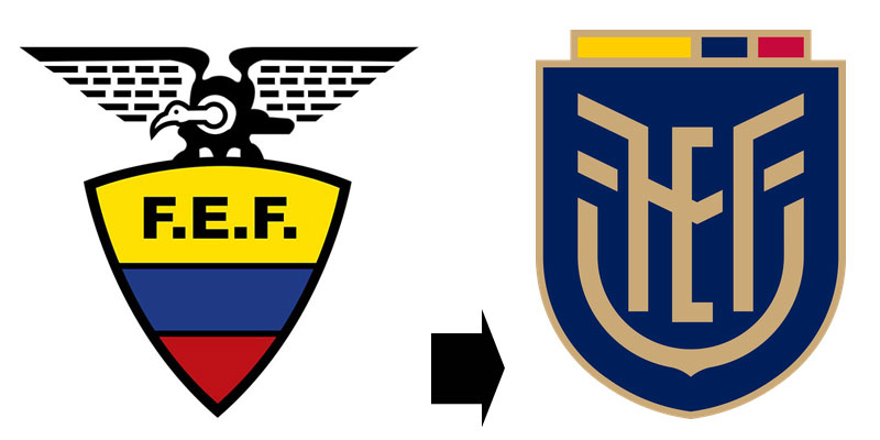 エクアドルは2020年のコパ・アメリカから新エンブレムを使用。デザイン的には完全に昨今のトレンドであるアイコン化・シンボル化だが、サッカー連盟の略称FEFでコンドルを表現することで伝統的な要素も反映させている。