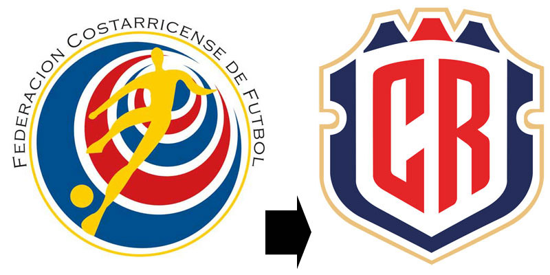 コスタリカは2022カタールW杯出場のタイミングで新しいエンブレムデザインを採用。人間のシルエットを描く世界的にも珍しいデザインから、シンプルに“CR”を配した盾形エンブレムへと大胆な変更となった。
