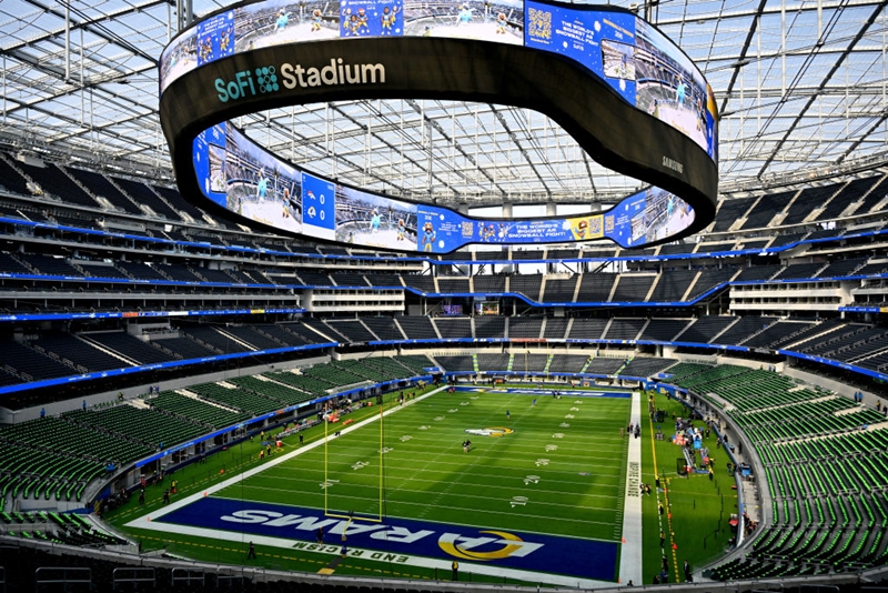 SoFi(ソーファイ)はハリウッドパーク競馬場跡地に5000億円以上をかけて建設された最強スタジアム。NFLのロサンゼルス・ラムズとロサンゼルス・チャージャーズが本拠地として使用している。