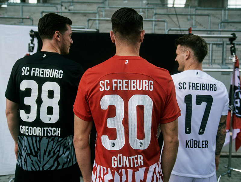 各キットの胸スポンサーは新たにフライブルクを拠点とする自転車/電動自転車のリース会社「JOBRAD」に変更。22-23シーズンの胸スポンサー「CAZOO」(オンライン中古自動車販売会社)は経営不振により、サッカー界からほぼ全面撤退状態だ。