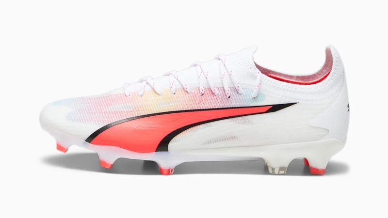 また、新たな『ウルトラ アルティメット』は、スマートなサイドのフォームストリップとPWRTAPEを視認できる半透明のデザインを採用。より速さを感じられるようなデザインに仕上がっている。カラーはプーマホワイト/プーマブラック/ファイヤーオーキッドだ。