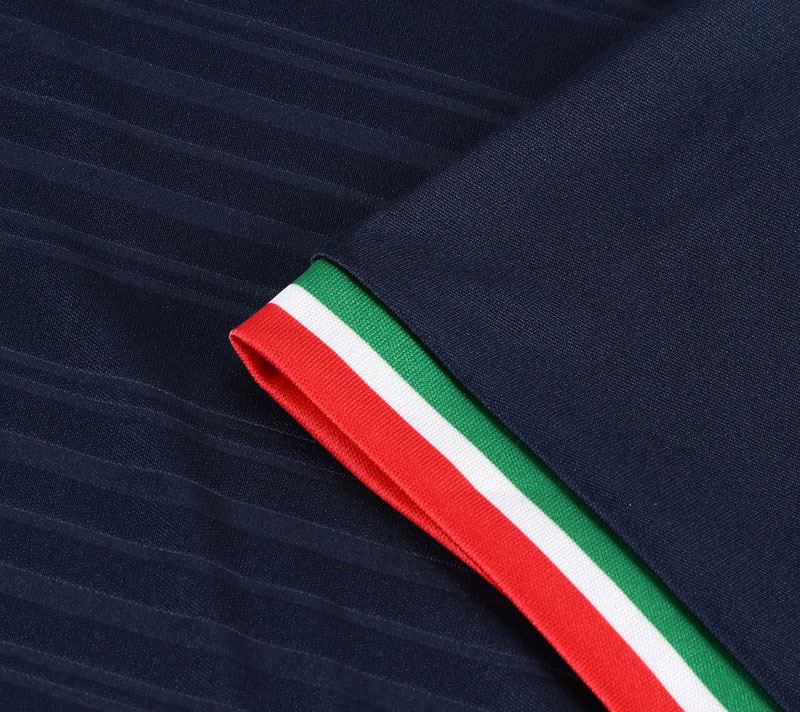 袖口にはアクセントとして効果的なイタリア国旗の3色をデザイン。これはセリエA優勝チームが翌シーズンのユニフォームに付ける、国旗3色のスクデットワッペンをイメージしたものと思われる。