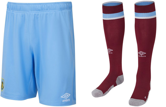 シャツはバーンリー伝統のクラレット(赤紫)とスカイブルーのコンビネーションに。