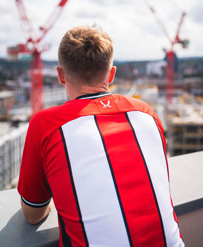 プレミアリーグに昇格したシェフィールド・ユナイテッドとキットサプライヤーのErreaは14日、2023-24シーズンに向けた新ホームユニフォームを発表した。