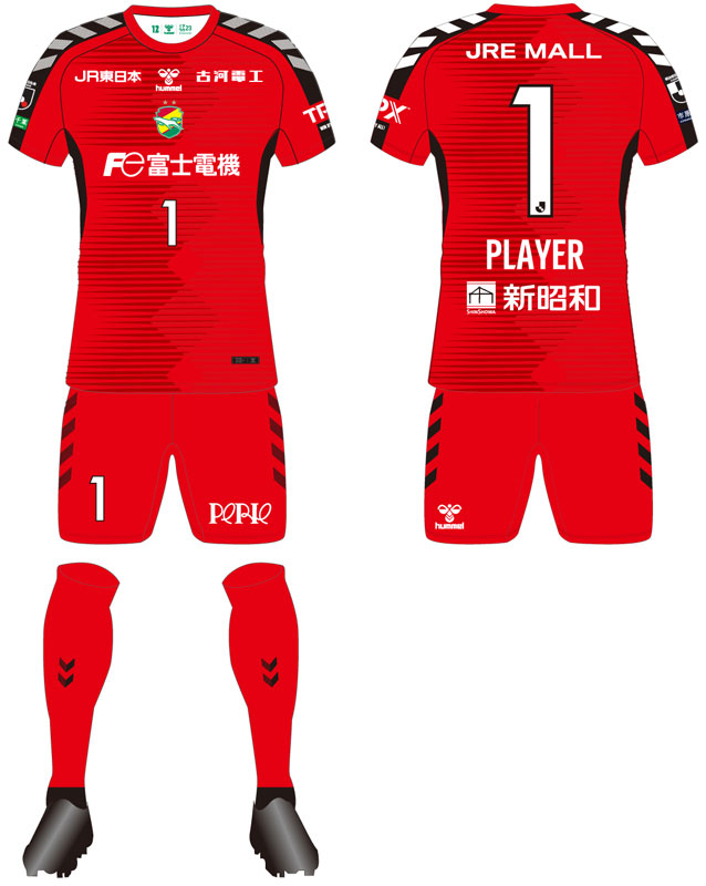 GKユニフォームにも広域化20年記念が登場。こちらは全身レッドで統一のデザインを採用となった。